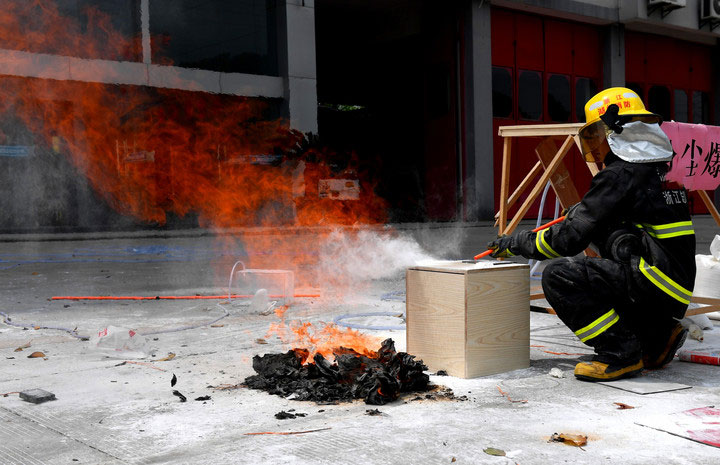我们按照李先生的指示,将软管一端与塑料瓶的上半部分连接好,并将面粉填充在塑料瓶中。点燃蜡烛后,从软管的另一端吹气,填充在塑料瓶内的面粉随之四处飘散开来。两秒钟后,蜡烛上方的面粉粉尘瞬间点燃,且火势不小。对于实验结果,大家都感觉不可思议。“面粉是可燃物,平时堆放在那里时,只有外面一层和空气接触,由于接触面积小,所以比较难燃烧。”李先生解释说,“一旦面粉变成很细的微尘飞扬在空中时,每一粒微尘都能和空气充分接触,遇到明火或高温就能迅速点燃并有可能发生爆炸,这种现象有个专业术语叫粉尘爆炸。”李先生表示,因此,他面包房的面点加工区域都是禁止明火的。